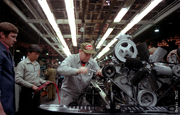 Космонавт Алексей Леонов во время Всесоюзного коммунистического субботника в объединении "Авто ЗИЛ", 1984 год