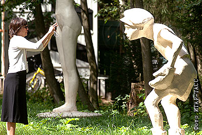 Посетительница на фестивале актуального искусства в усадьбе Веретьево