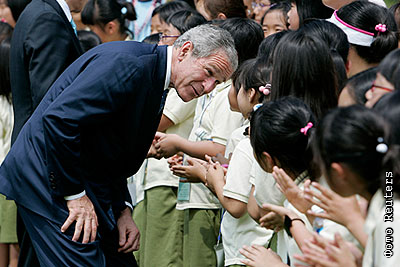 В программе визита президента США Джорджа Буша встреча с президентом Южной Кореи Ли Мен Баком.