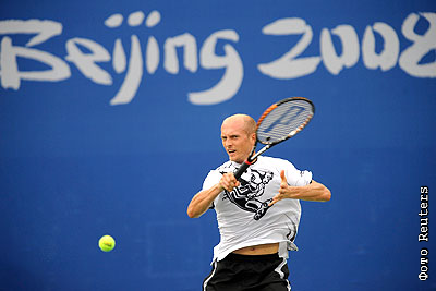 Российский теннисист Николай Давыденко на тренировке в Пекине