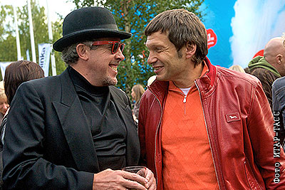 Музыкант Андрей Макаревич и телеведущий Владимир Соловьев на праздновании дня рождения радиостанции "Серебряный дождь" в "Le Meridien Moscow Country Club" в Нахабино