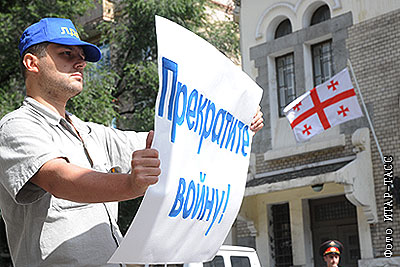 На митинге против военных действий в Южной Осетии у посольства Грузии