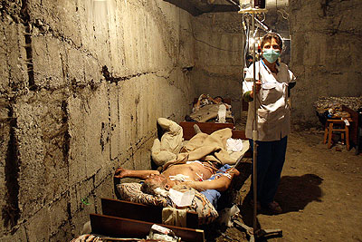 В подвале Республиканской клинической больницы в Цхинвали врачи помогают пострадавшим от массированных обстрелов