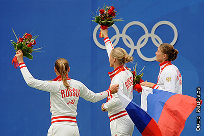 Вера Звонарева расправилась с китаянкой Ли На со счетом 6:0, 7:5 и выиграла "бронзу". В финале же Елена Дементьева, ставшая второй в Сиднее-2000, смогла воплотить свою мечту и победить на Играх. Динара Сафина оказала ей достойное сопротивление, но на весь матч, который продолжался более двух с половиной часов, у нее не хватило сил - 3:6, 7:5, 6:4 в пользу Дементьевой