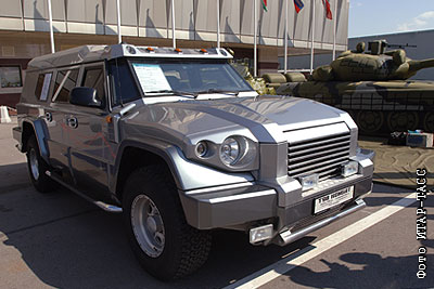 Пассажирский бронированный автомобиль СОМВАТ Т98 представлен на выставке "МВСВ-2008" в "Экспоцентре" на Красной Пресне