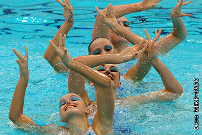 Российские спортсменки, завоевавшие золотую медаль в синхронном плавании, на Олимпийских играх