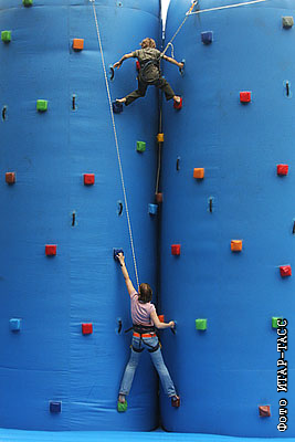 Скалодром на фестивале "Hobby Fest", прошедшем в парке Красная Пресня