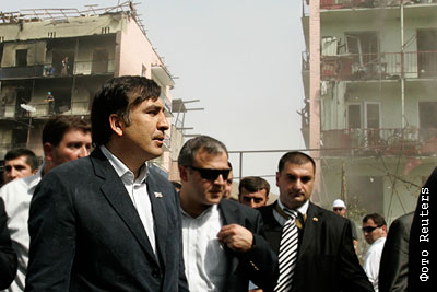 Михаил Саакашвили на улицах Гори