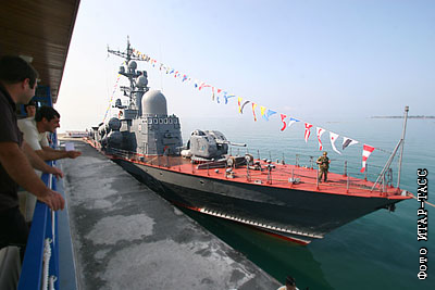 Во время встречи группировки российских кораблей во главе с флагманом Черноморского флота ракетным крейсером "Москва" в порту Сухуми