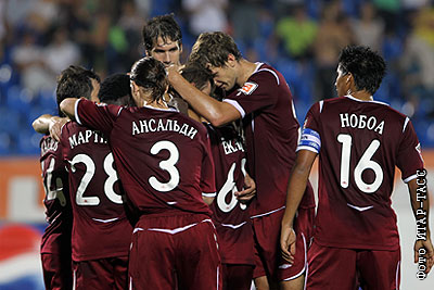 Игроки "Рубина" в матче чемпионата России по футболу: "Рубин" (Казань) - "Томь" (Томск) - 2:1