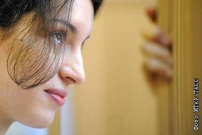 Евгения Хасис, обвиняемая в убийстве адвоката Станислава Маркелова и журналистки Анастасии Бабуровой, в здании Басманного суда. Суд рассматривает ходатайство о продлении срока содержания ее под стражей