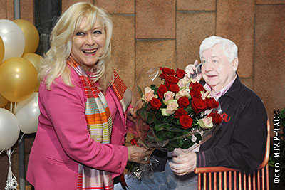 Актриса Ирина Мирошниченко перед церемонией празднования 75-го юбилея актера и режиссера Олега Табакова в МХТ имени Чехова
