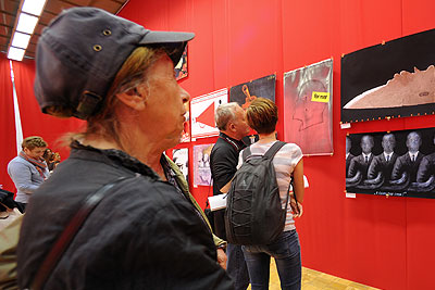 Посетители на Московском Международном биеннале графического дизайна "Золотая пчела 9" в ЦДХ