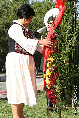 Президент Киргизии Роза Отунбаева на торжественной церемонии, посвященной празднованию Дня независимости в Киргизии, на площади Ала-Тоово