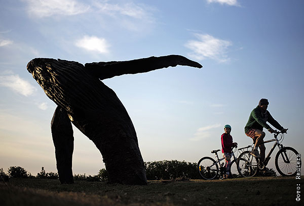 Выставка под открытыми небом растянулась на два километра между сиднейскими пляжами Бонди и Тамарама. Плата за посещение выставки не взимается. На фото скульптура кита авторства Майкла Грива.