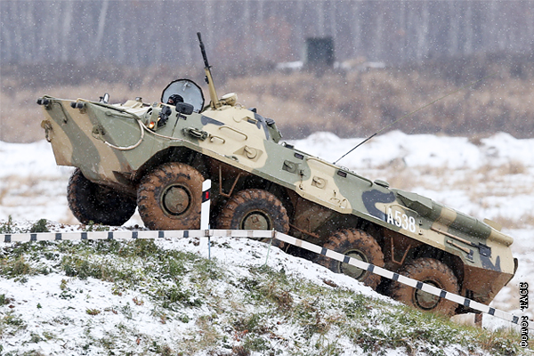 Бронетранспортер преодолевает препятствие во время демонстрации в рамках выставки "Интерполитех - 2014".