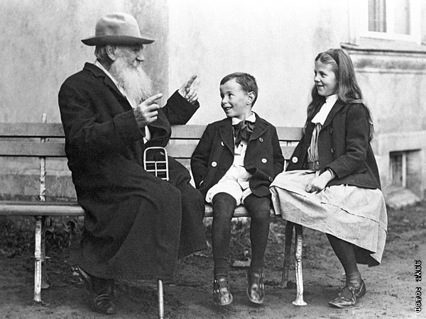 "Лев Толстой рассказывает внукам Соне и Илюше сказку". 1909 год.