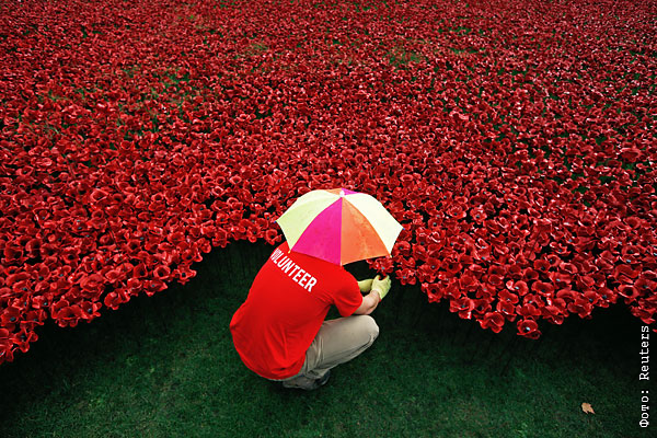 11 ноября — в день окончания Первой мировой войны - у Лондонского Тауэра был "посажен" последний из красных керамических маков в память о погибших в этом военном конфликте солдатах Британской империи. Красные цветы являются главными элементами инсталляции "Кровь обагрила земли и моря" (Blood Swept Lands and Seas of Red), которую силами волонтеров начали устанавливать в июле, а открыли в августе.
