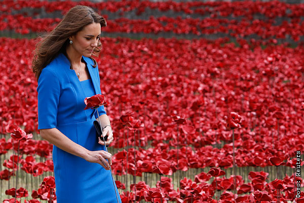 В начале августа один из красных маков рядом с Тауэром "высадила" супруга принца Уильяма, герцогиня Кембриджская Кейт Миддлтон.