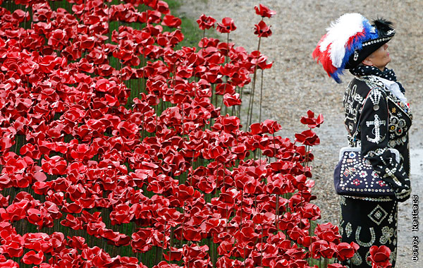 11 ноября — в день окончания Первой мировой войны - у Лондонского Тауэра был "посажен" последний из красных керамических маков в память о погибших в этом военном конфликте солдатах Британской империи. Красные цветы являются главными элементами инсталляции "Кровь обагрила земли и моря" (Blood Swept Lands and Seas of Red), которую силами волонтеров начали устанавливать в июле, а открыли в августе.