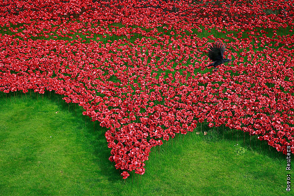 11 ноября — в день окончания Первой мировой войны - у Лондонского Тауэра был "посажен" последний из красных керамических маков в память о погибших в этом военном конфликте солдатах Британской империи. Красные цветы являются главными элементами инсталляции "Кровь обагрила земли и моря" (Blood Swept Lands and Seas of Red), которую силами волонтеров начали устанавливать в июле, а открыли в августе.