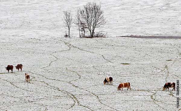 Заснеженное поле в деревне Бад-Тёльц на юге Германии.