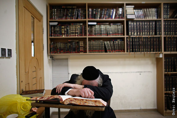 Верующий в здании иерусалимской синагоги, в которой было совершено нападение на прихожан.