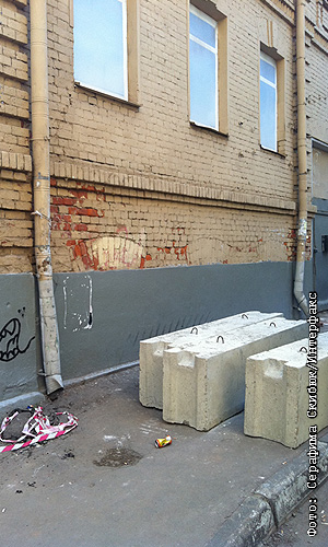 В Большом Козихинском переулке, д.25 в минувшие выходные сломали стену. В среду 27 июля ЧОПовцы в новой форме строителей завезли бетонные блоки, чтобы превратить двор в строительную площадку, и принялись биться с местными жителями.