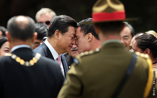 Президент Китая Си Цзиньпин во время приветственной церемонии маори на территории дома правительства в Веллингтоне, Новая Зеландия.