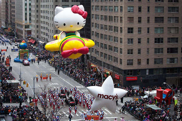 27 ноября в Нью-Йорке состоялся традиционный парад гигантских надувных игрушек Macy’s Thanksgiving Day Parade, приуроченный ко Дню благодарения. Сотни тысяч жителей города и туристов собрались вдоль центральной улицы, чтобы посмотреть на шествие. Самое красочное и массовое дневное зрелище организуется торговой сетью Macy's и символизирует открытие сезона рождественских скидок.
