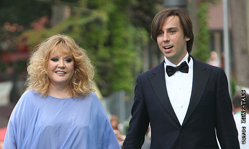 Певица Алла Пугачева и телеведущий Максим Галкин на церемонии открытия Международного конкурса молодых исполнителей популярной музыки "Новая Волна 2011".