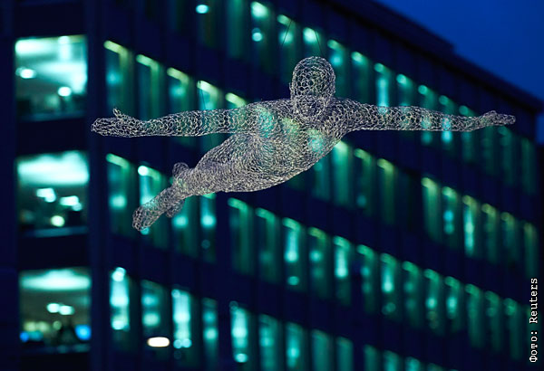 Один из элементов инсталляции под названием "Путешественники" французского художника Седрика Ле Борне на площади Бель-Эр в Женеве