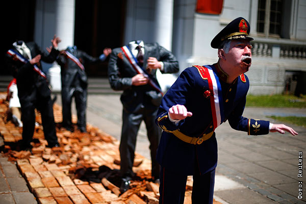 Скульптурная композиция, изображающая бывшего чилийского диктатора Аугусто Пиночета и обезглавленных президентов в Музее современного искусства в Сантьяго
