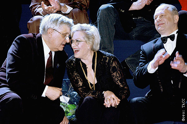 Народные артисты СССР Олег Басилашвили и Алиса Фрейндлих, народный артист России Андрей Толубеев (слева направо) на юбилейном вечере, посвященном празднованию 85-летия Академического Большого драматического театра им. Георгия Товстоногова.