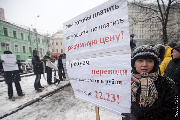 У здания Центрального банка России прошел пикет граждан, взявших ипотечные кредиты в валюте