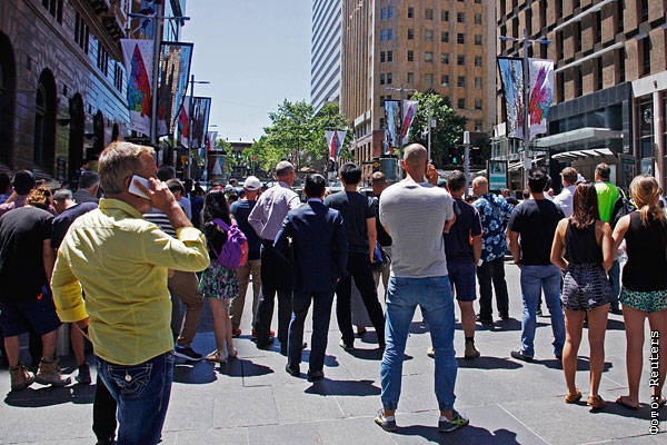 Вооруженный человек взял в заложники несколько десятков человек в одном из кафе Сиднея. Мужчина потребовал встречи с премьер-министром Австралии Тони Эбботом и заставил нескольких заложников развернуть перед окном черное полотнище с надписью на арабском языке.