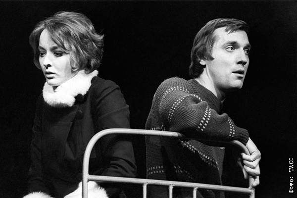 Сцена из спектакля "Валентин и Валентина" по одноименной пьесе Михаила Рощина. Валентина - Анастасия Вертинская, Валентин - Евгений Киндинов, 1972 год.