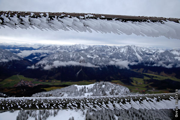 Вид с вершины горы Вендельштейн (1838 метров) в Баварских Альпах