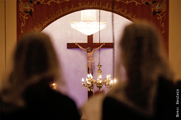 Иракские христиане молятся во время мессы в католической церкви в Багдаде