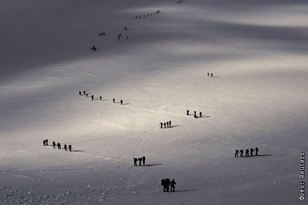 Альпинисты на пути к вершине. Альпы, Брайтхорн