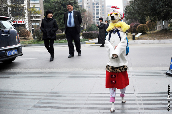 Шанхайский пес по кличке Сяоню ежедневно сопровождает своего хозяина на продуктовый рынок на задних лапах. Таким образом он может передвигаться в течение часа без перерыва.