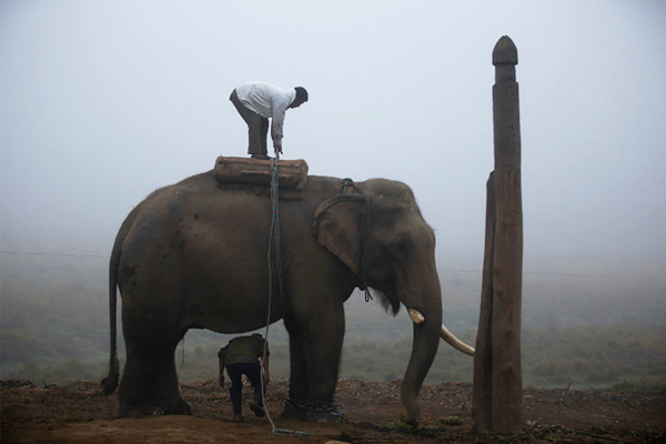 Погонщик готовится к фестивалю слонов в парке Читван, в 170 км к югу от Катманду, Непал