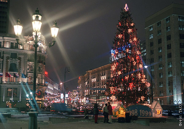 Двадцатиметровая елка на Манежной площади. Москва, 1998 год.