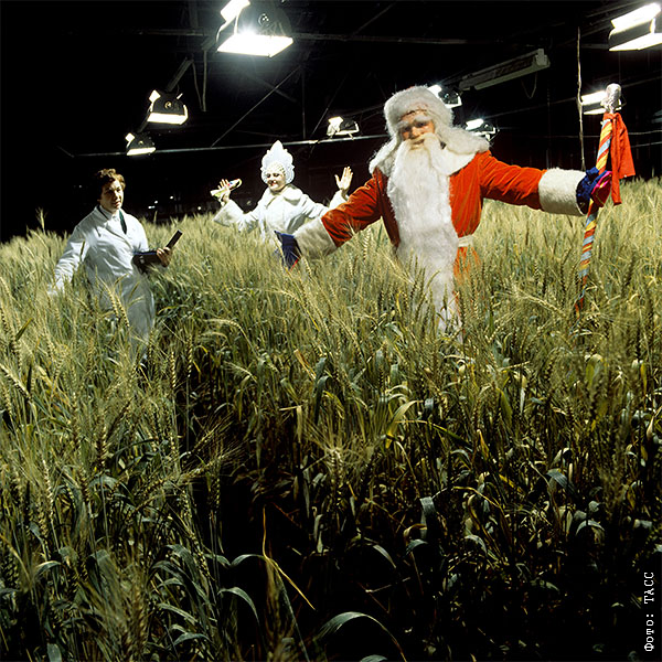 Алтайский край. Дед Мороз и Снегурочка в Алтайском НИИ земледелия и селекции сельскохозяйственных культур. 1980 год.