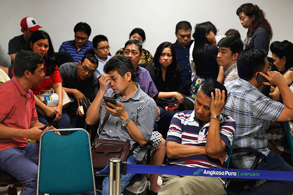 Родственники и близкие пассажиров собрались в аэропортах индонезийского города Сурабая и Сингапура, ожидая известий о своих родных.