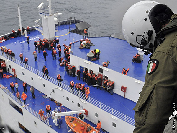 Капитан судна принял решение об эвакуации пассажиров. Спасательные работы затруднены из-за шторма.