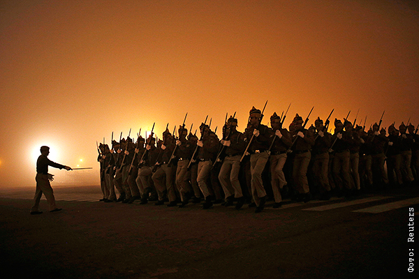 Индийские полицейские во время репетиции парада посвященного Дню Республики в Нью-Дели