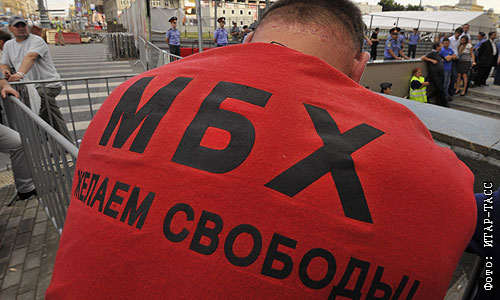 Участник "сидячей" акции оппозиции на Триумфальной площади