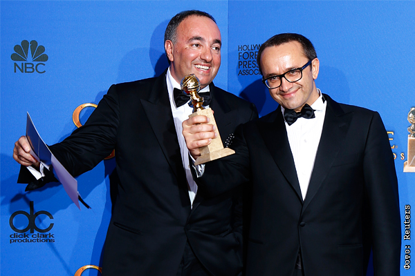 Александр Роднянский (слева) и Андрей Звягинцев на церемонии вручения премии "Золотой Глобус"