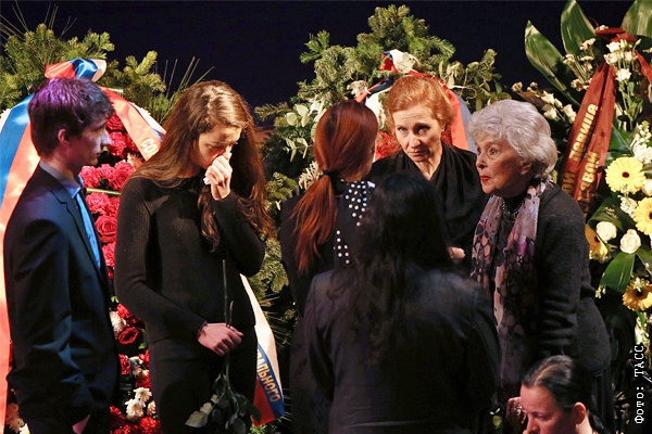 Актриса Вера Васильева (справа) и родственники Елены Образцовой на церемонии прощания